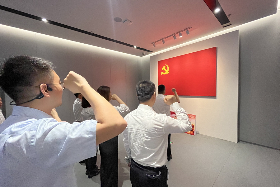 會(huì)后黨員們集體參觀了紅色文化體驗(yàn)館,在講解員的帶領(lǐng)下,黨員們穿過(guò)時(shí)空隧道,重溫建黨至今的重要?dú)v史節(jié)點(diǎn);通過(guò)展館內(nèi)多種先進(jìn)數(shù)字技術(shù)讓黨員們沉浸式體驗(yàn)了飛奪瀘定橋、爬雪山過(guò)草地、夜襲陽(yáng)明堡等歷史場(chǎng)景,切身感受了當(dāng)年戰(zhàn)爭(zhēng)環(huán)境的艱辛及戰(zhàn)士們英勇無(wú)畏的革命精神;在5D影院,黨員們“遨游俯瞰”了黨的十八大以來(lái)我們?cè)谳d人航天、橋梁基建、生態(tài)環(huán)境保護(hù)方面取得的重要成就;最后在初心講堂前,黨員們重溫了入黨誓詞,進(jìn)一步強(qiáng)化了黨員理想信念。